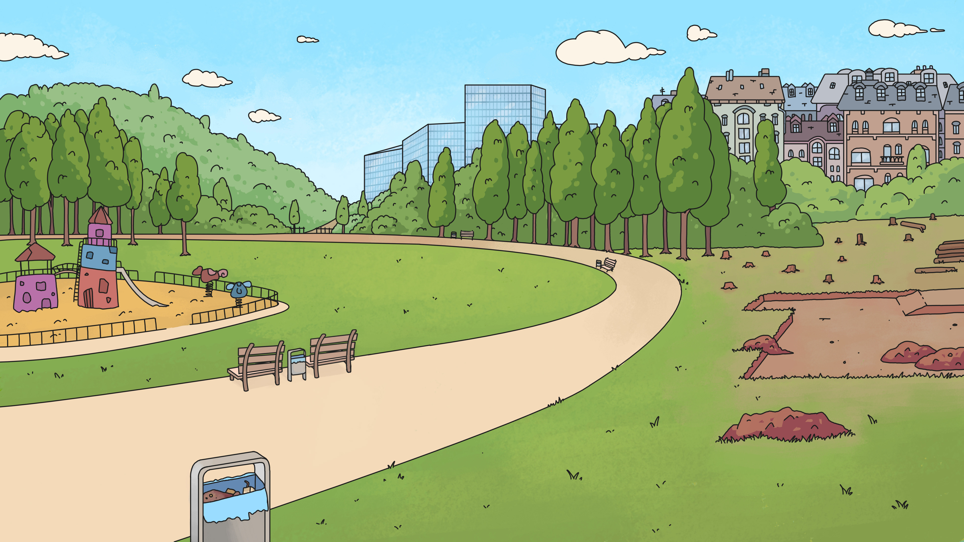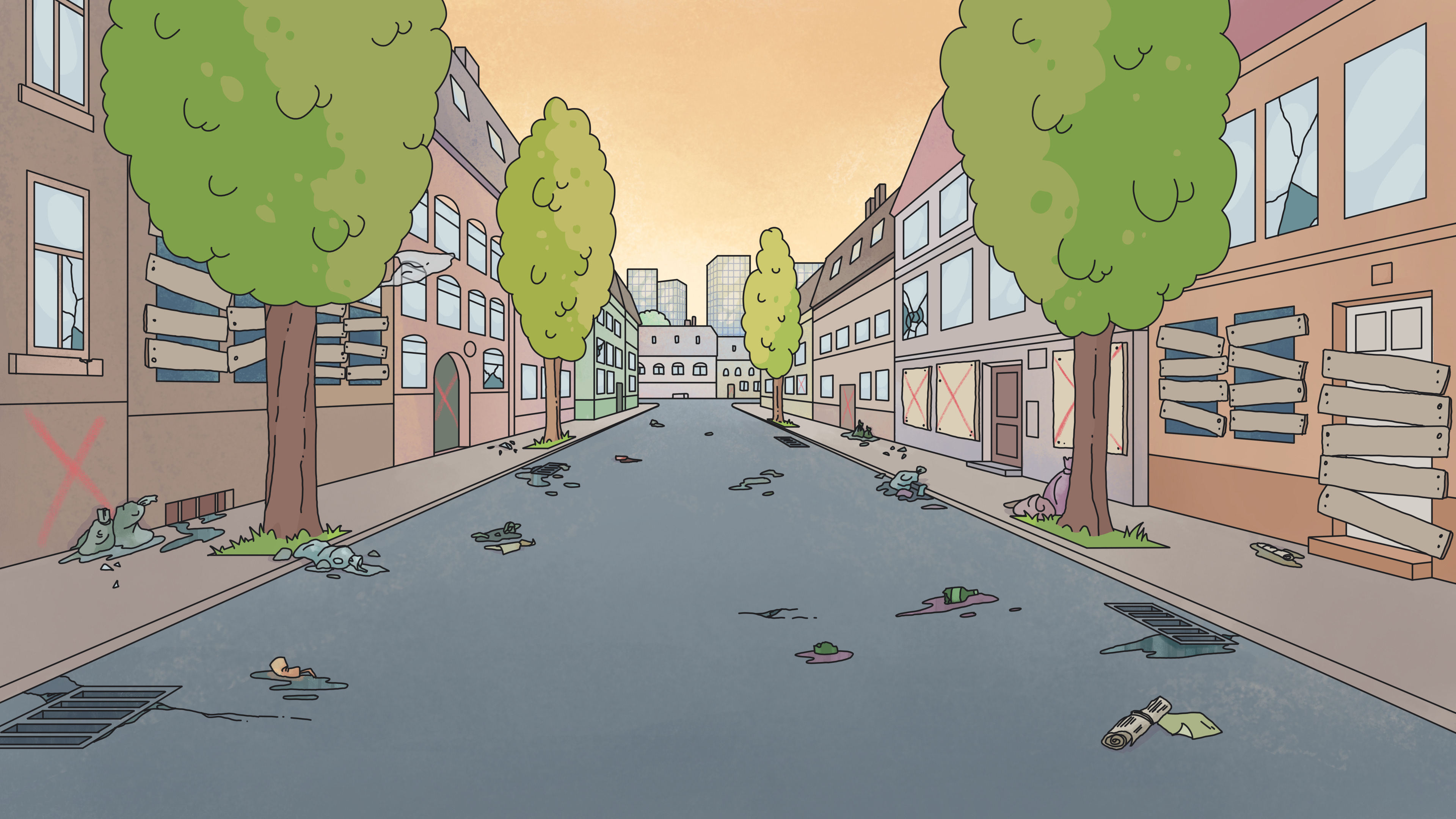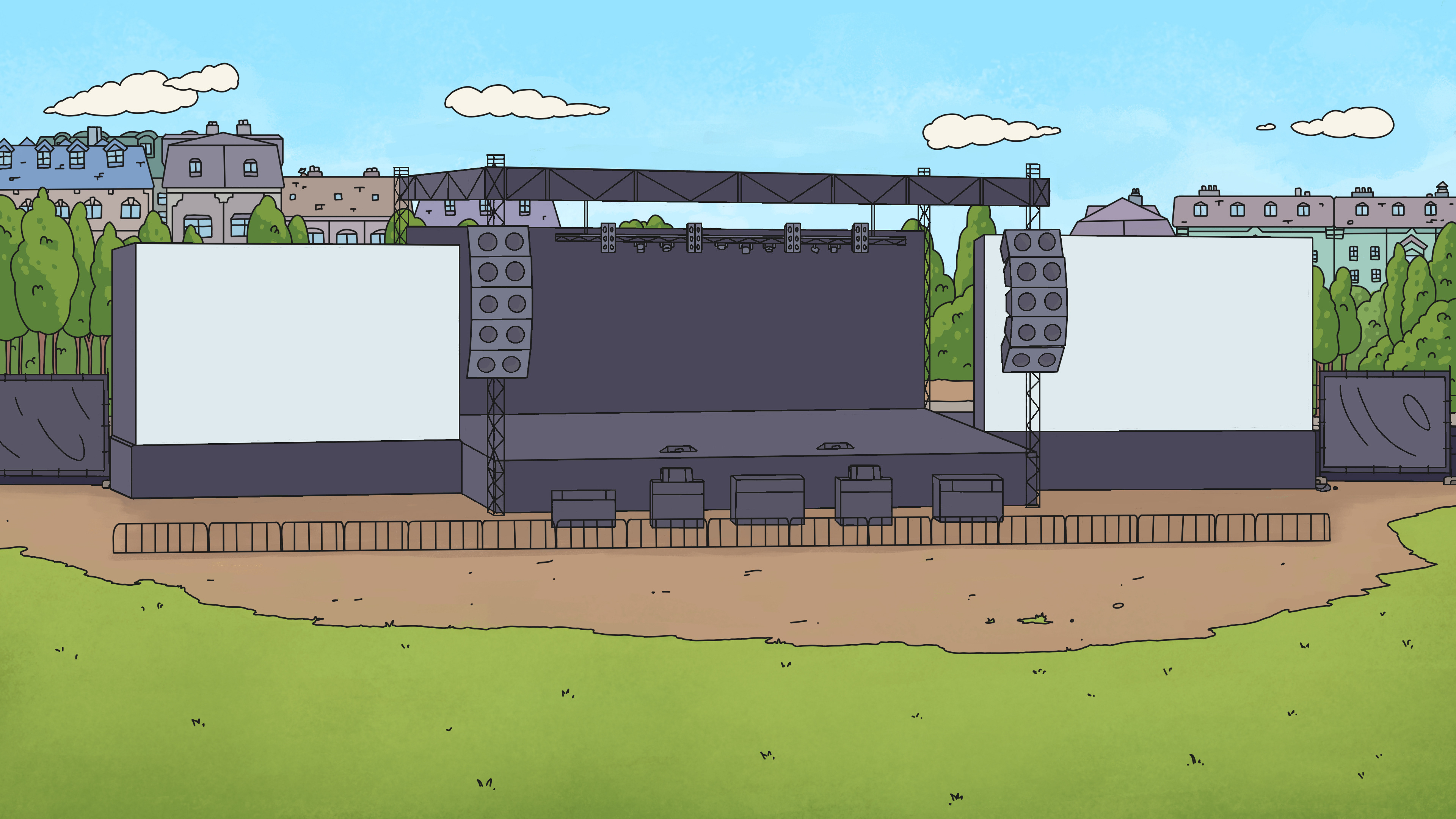 Für die animierte Sitcom Serie: Friedefeld (erschienen am 22. März 2024 auf BR Fernsehen & ARD Mediathek) erstellte ich insgesamt circa 30 Set Hintergründe.