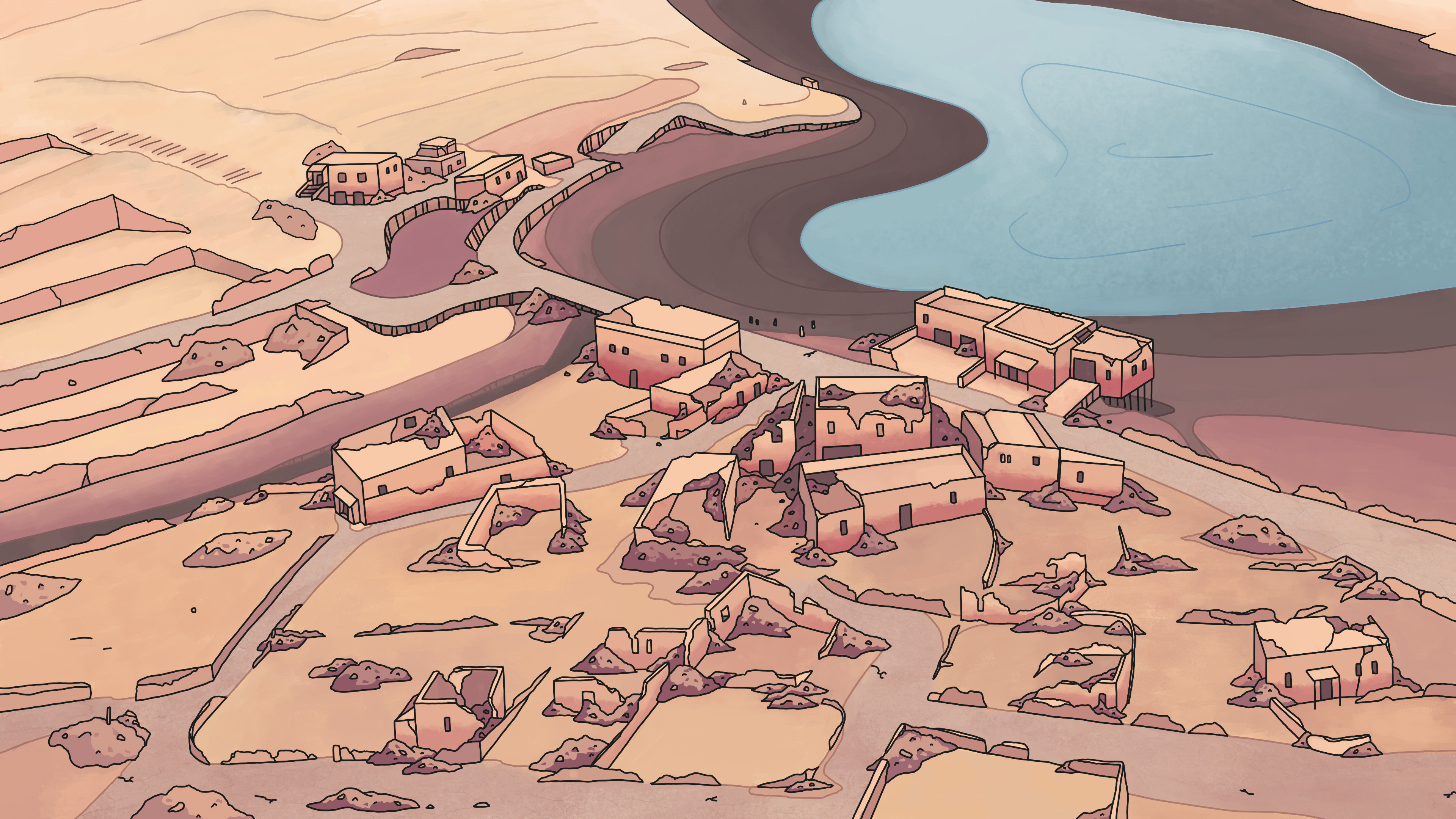 Für die Sets wurden Briefings und teilweise Referenzen sowie Storyboard-Ausschnitte zur Verfügung gestellt. Durch einen Prozess von Briefings, Skizzen und Feedbackrunden verfeinerte ich die Sets um an den Stil und die Wünsche der Produktion anzuknüpfen.